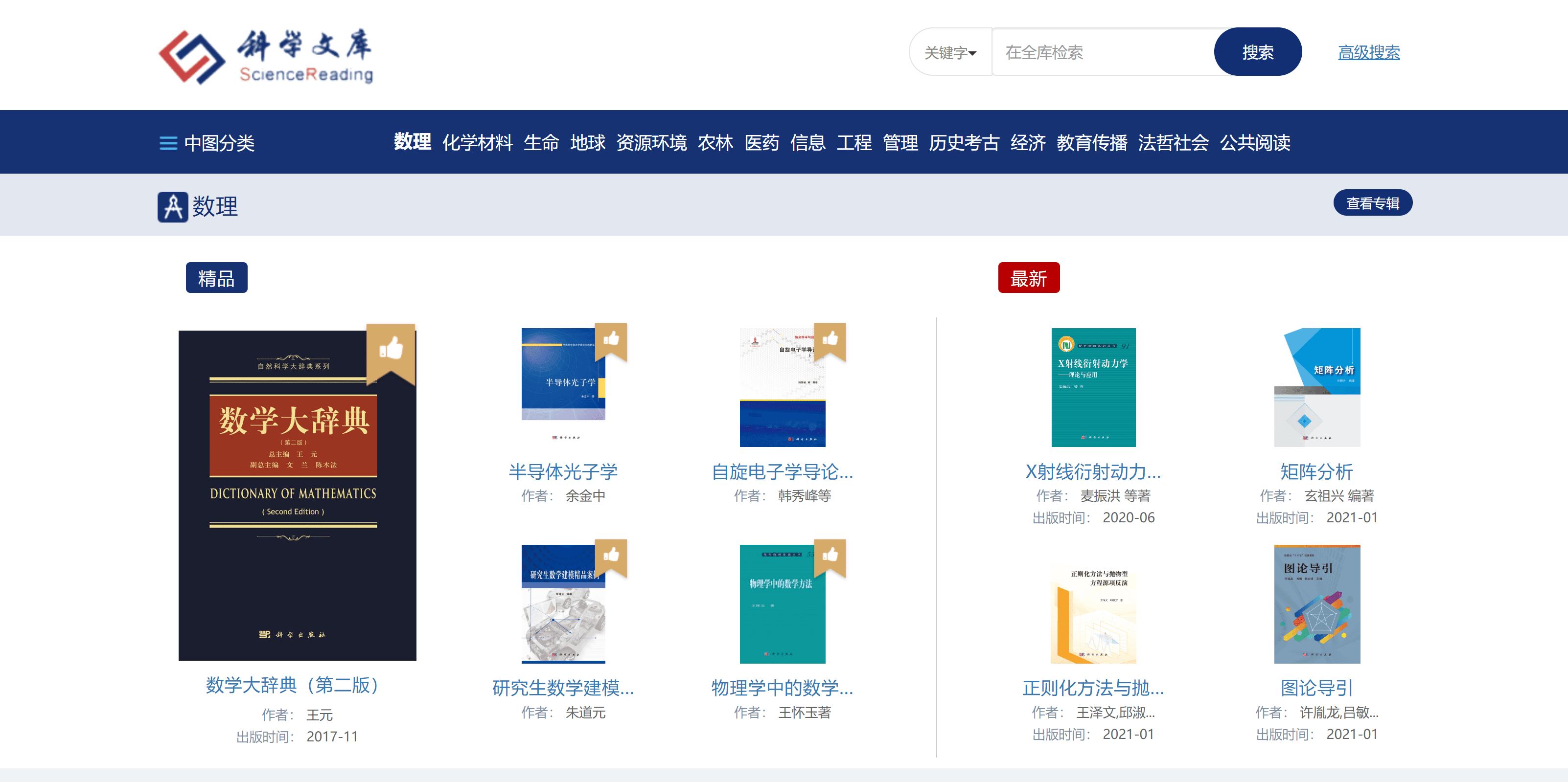科学出版社旗下的图书网站,网站内有多个学科电子教材可以查看(并下载,如果你们的学校购买了的话)。