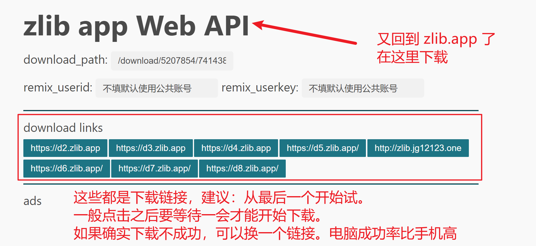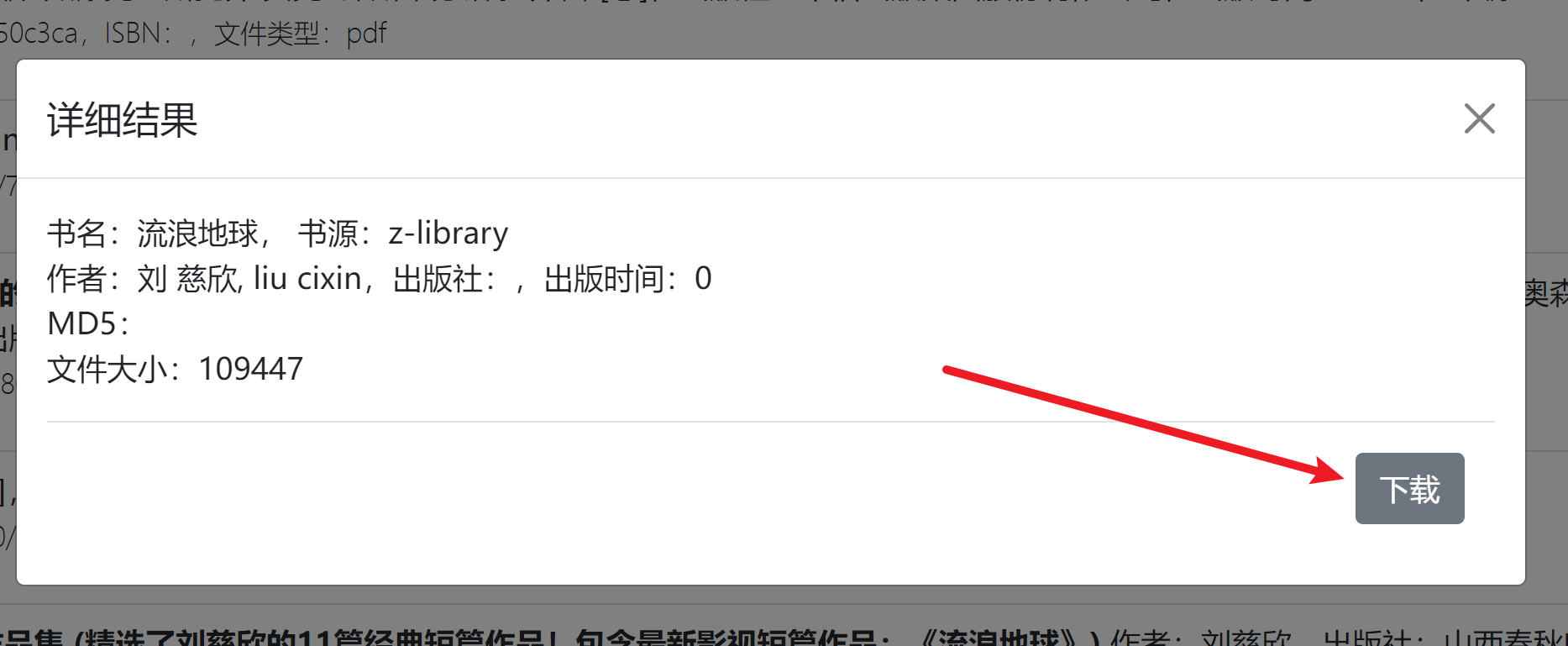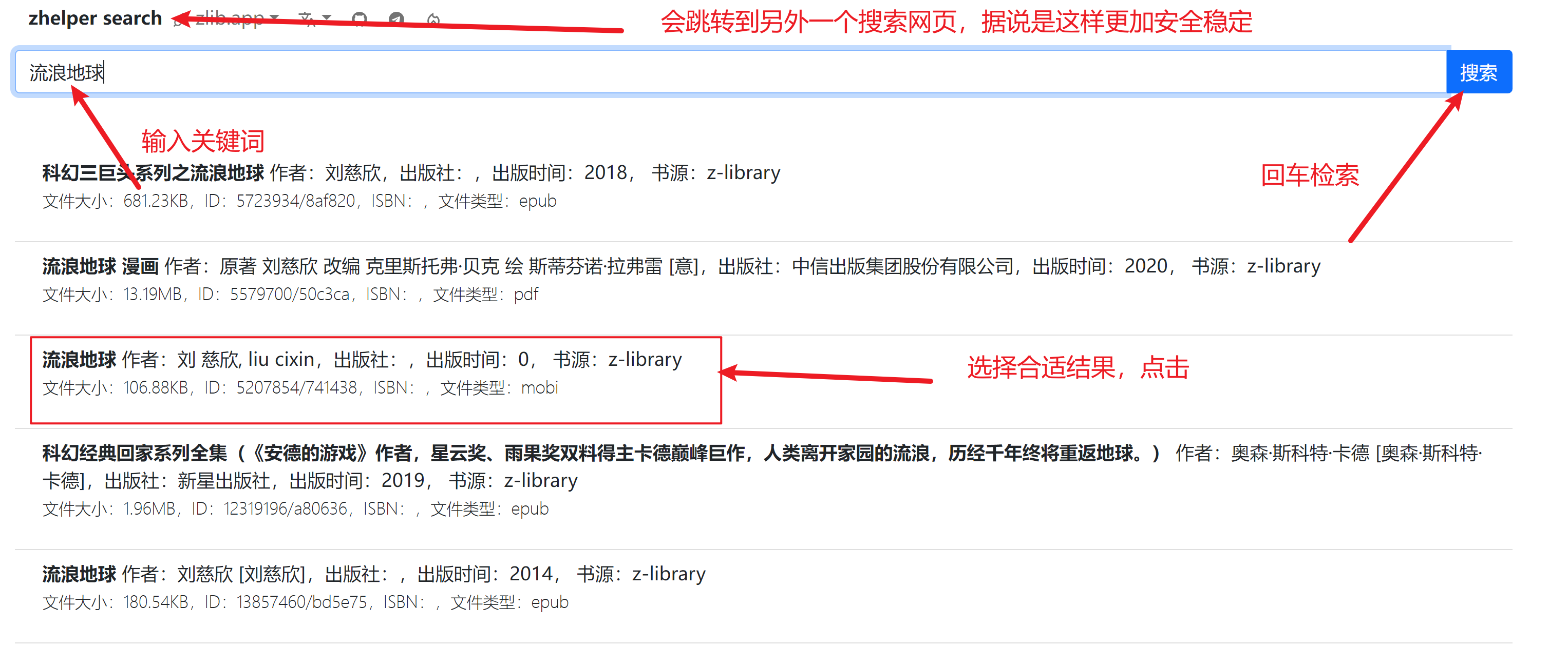 Welcome YiBook Project! 欢迎来到易书计划 :tada:/ 文章/ zlib.app:直接接入 zlibrary 官方服务器的网页版搜索工具/ zlib.app:直接接入 zlibrary 官方服务器的网页版搜索工具 27 一月 2023·1 分钟 Table of Contents 使用教程 zlib.app 是一个直接接入了 zlibrary 官方服务器的,相较目前其他解决方案,其书库更大、对冷门书籍的支持更好,且包括了2023年新上传的书籍。 使用教程 # 打开官网 建议:可以先看一下说明 然后翻到上面,点击打开搜索界面 弹出这个网站,搜索: 点击下载后回到第一个网站,建议从最后一个开始试,因为大部分人会从第一个开始用,前面的网址就很挤: